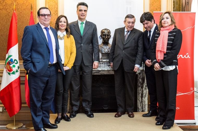 Foto de familia tras descubrir el busto del inca Garcilaso de la Vega