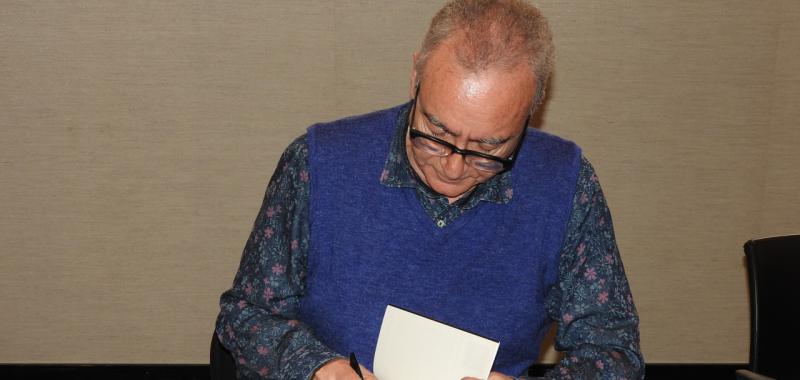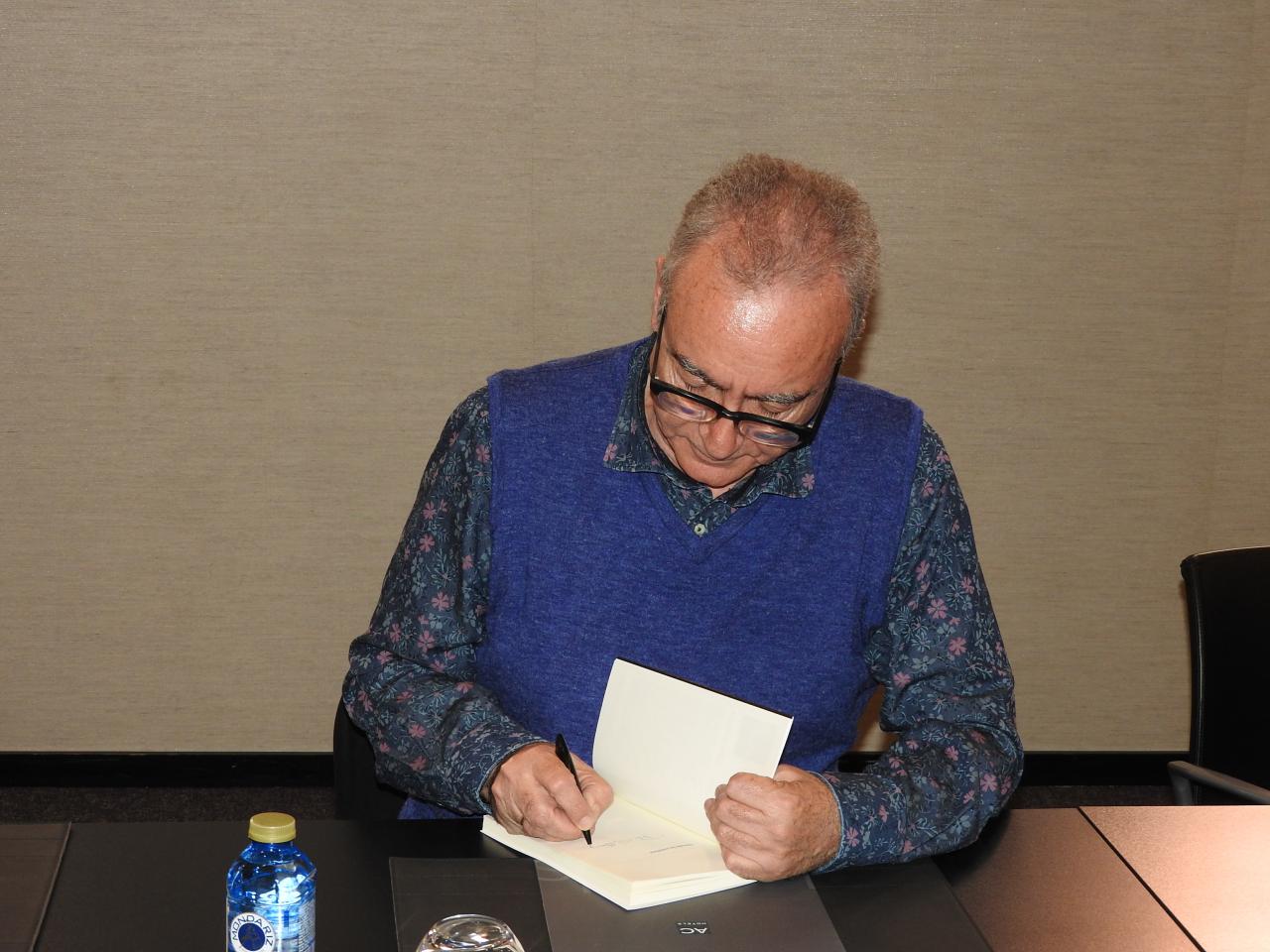 Sabe manejar a la perfección esas dos facetas suyas. “Empiezo de madrugada a escribir la ficción, estoy dos horas trabajando de seis a ocho y después desayuno, me voy a pasear, a comprar el periódico y a la vuelta es cuando me meto con la actualidad. Lo diferencio muy bien”, nos comenta al final de la presentación que se ha llevado a cabo en un conocido hotel de la calle Recoletos de Madrid.