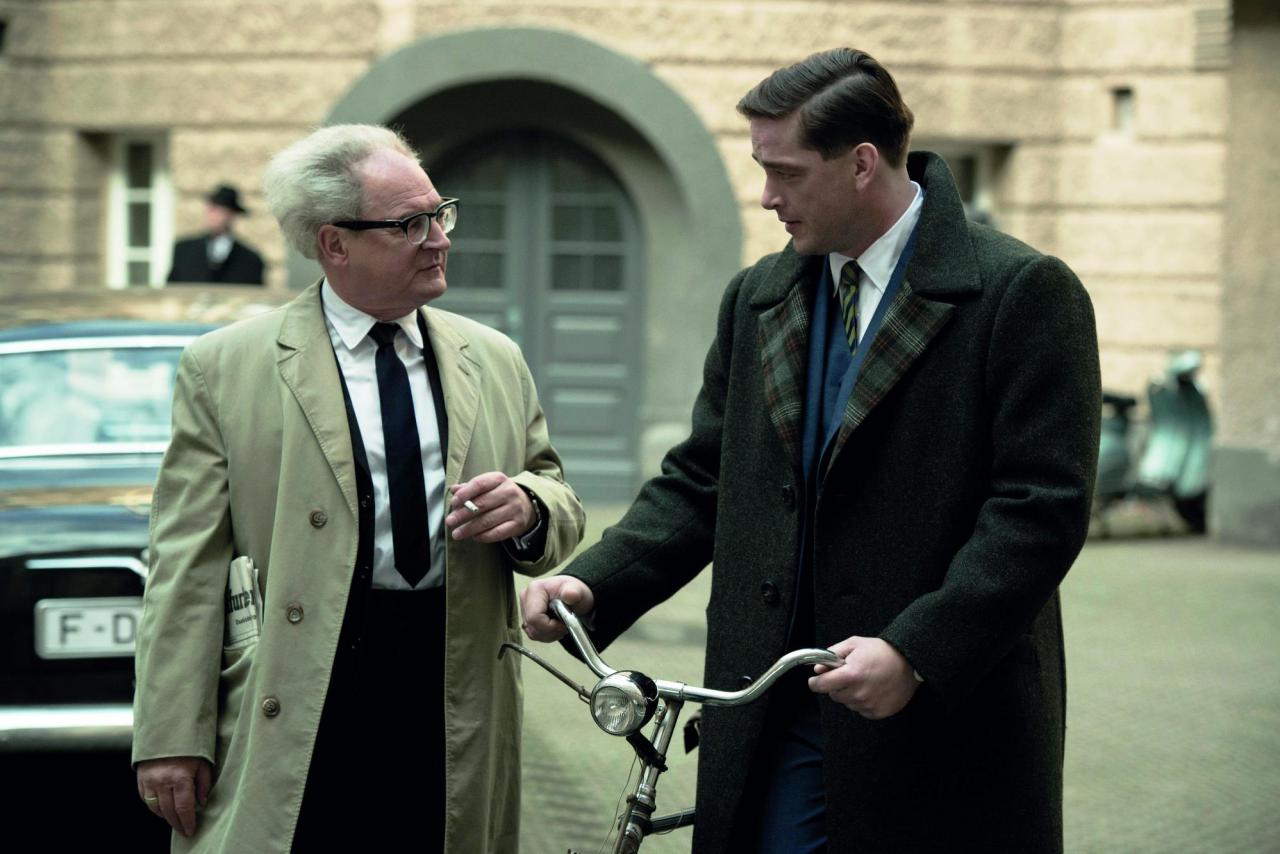 Reparto: Fritz Bauer (Burghart Klaussner); Karl Angermann (Ronald Zehrfeld); Heinz Mahler (Rüdiger Klink); Charlotte Angermann (Cornelia Gröschel); Victoria (Lilith Stangenberg); Ultrich Kreidler (Sebastian Blomberg)