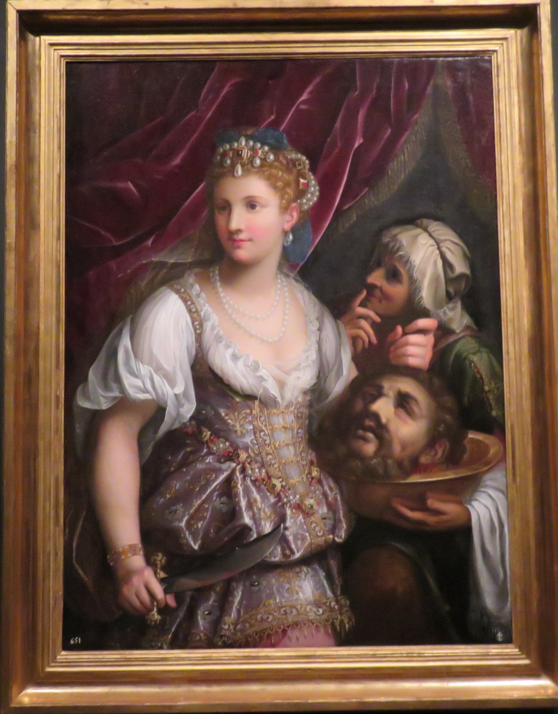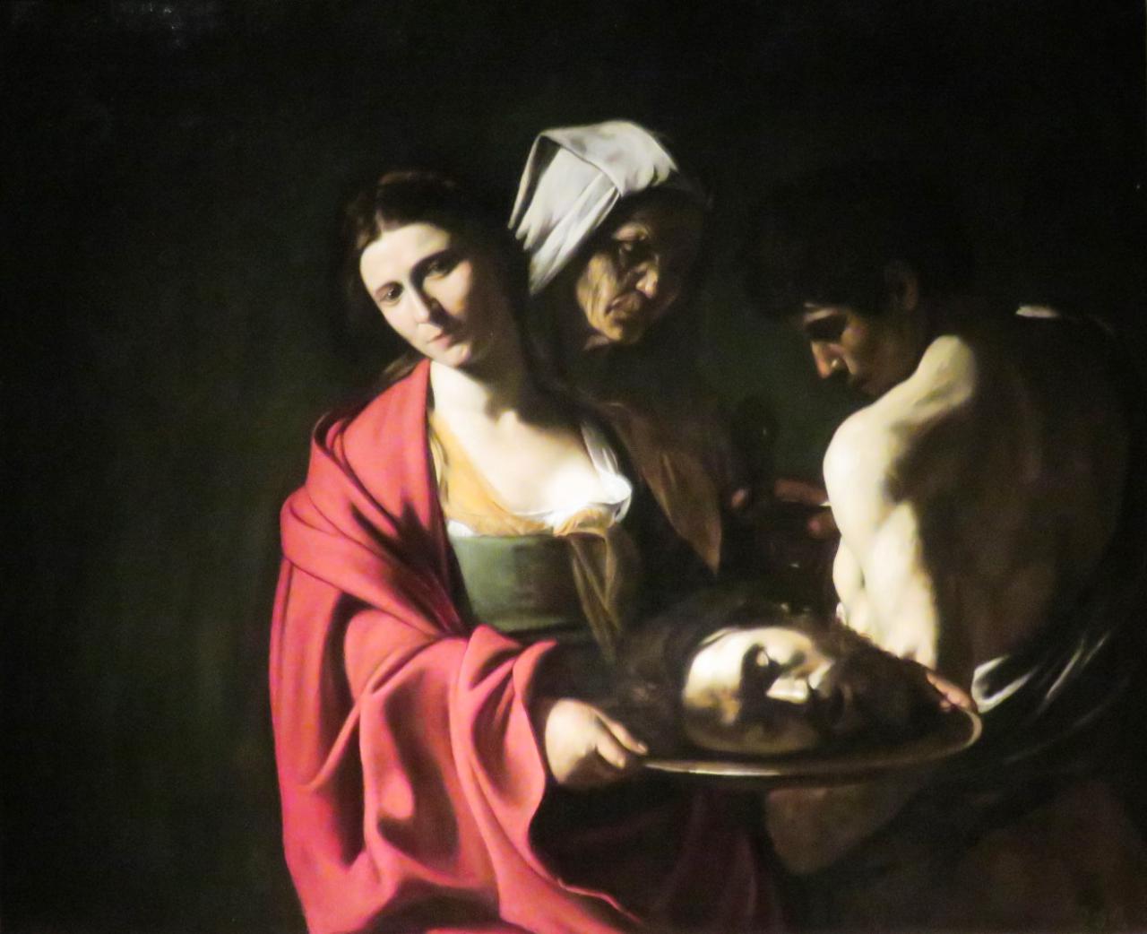Una de las obras maestras indiscutibles de las Colecciones Reales es el espléndido lienzo Salomé con la cabeza del Bautista de Caravaggio. El episodio bíblico es para el artista una historia presente, figurada mediante una revolucionaria representación directa del natural con toda la verosimilitud que requiere su asunto. Para ello utiliza un fuerte claroscuro que recalca la presencia física de las figuras en medio de la oscuridad: de esta manera lo narrado es un drama vivo y creíble. El naturalismo revolucionario de Caravaggio transmite el realizado en detalles como el reflejo de la luz sobre la hoja del cuchillo.