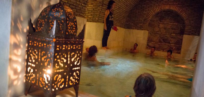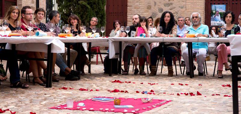 - Las características escenas en los baños árabes se completan con unos delicatesen de recitales en azoteas privadas. Los poetas son acogidos en casas particulares por los ciudadanos de Toledo, que además de prestar refugio a los artistas, ofrecerán sus hogares para la realización de recitales. Durante la semana, toda la ciudad se vuelca con la poesía, de tal forma que jóvenes estudiantes de secundaria del IES Sefarad serán los encargados de guiar a los poetas por la ciudad hasta los lugares donde recitarán.