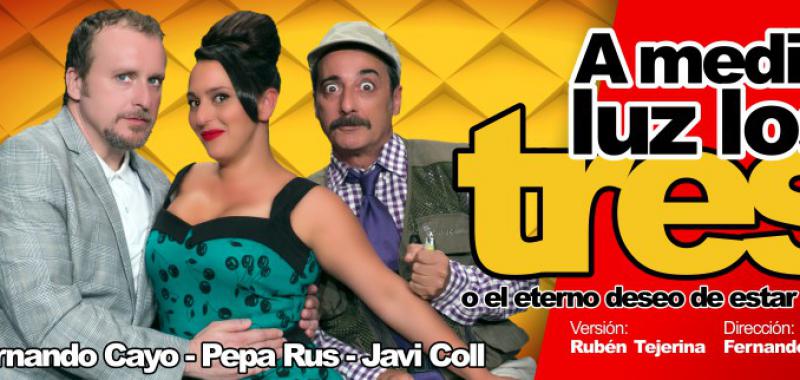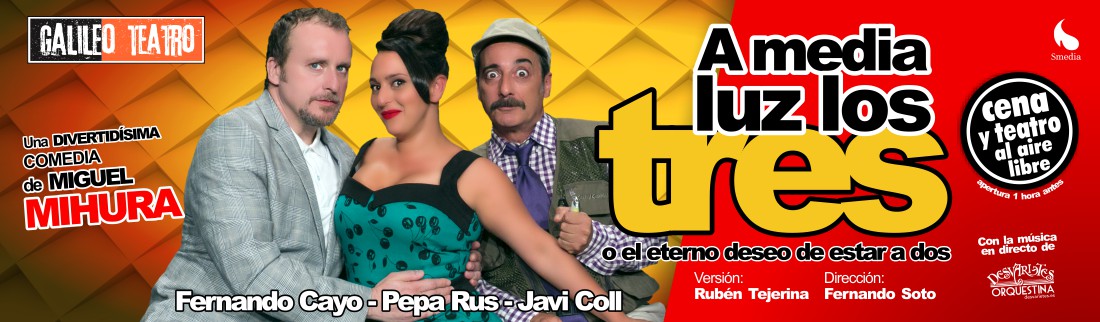 A media luz los tres se representa cada noche, de lunes a sábado a las 22.00 horas al aire libre en el patio del teatro Galileo. Una experiencia diferente para las noches de verano en Madrid en la que además los espectadores podrán disfrutar de una cena informal mientras disfrutan de esta comedia.