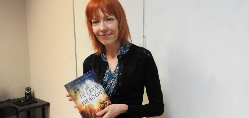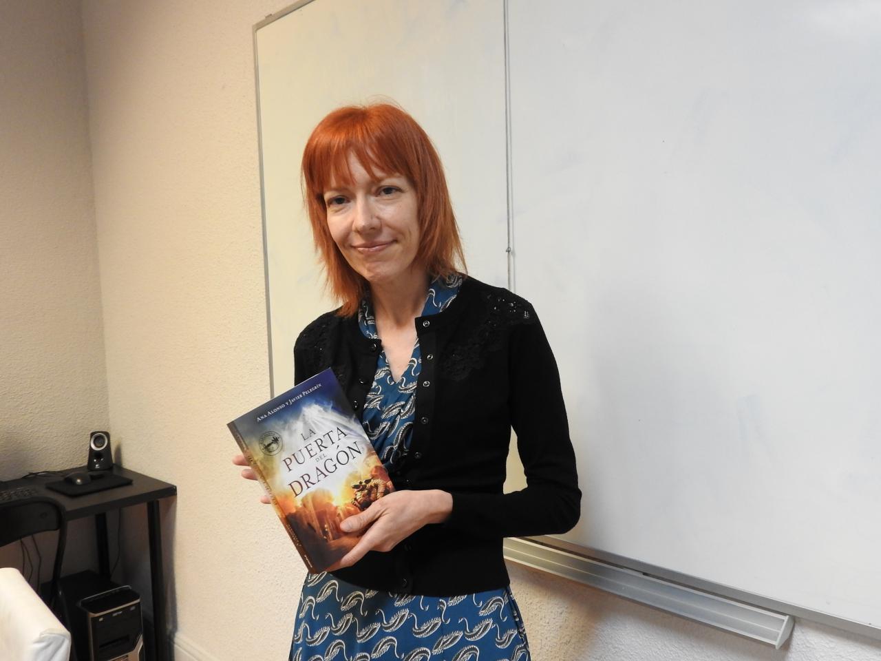 Ana Alonso es la parte visible del dúo Ana Alonso y Javier Pelegrín. Javier, la cara oculta de la Luna, no suele acudir a ningún encuentro o entrevista y deja en manos de su pareja Ana Alonso todo lo relacionado con la promoción de sus libros, mientras él, se encarga de las labores domésticas y del cuidado de sus hijos mientras piensa guiones para televisión o para las novelas que luego escriben juntos. “La puerta del dragón es una novela de fantasía urbana que convierte a Barcelona en su escenario mágico”, señala Ana Alonso durante la entrevista que mantuvimos.