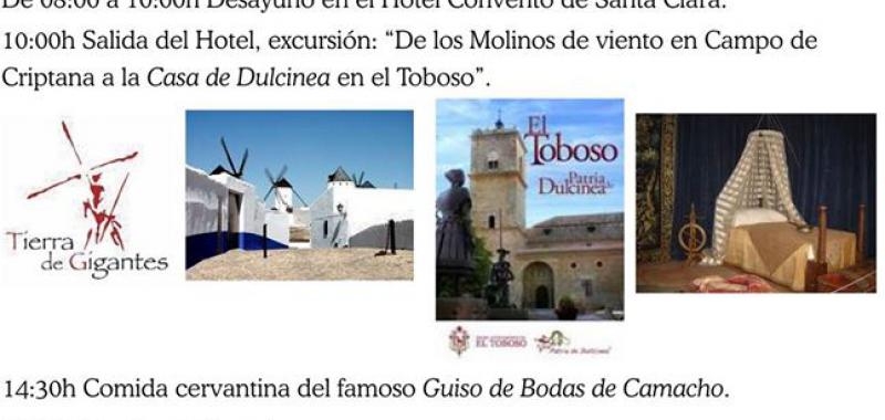 Otra de las actividades, en las que se conjuga la literatura con lo turístico, es la visita por “El Alcázar de Cervantes” y la excursión “De los molinos de viento de Campo de Criptana a la Casa de Dulcinea de El Toboso”, que harán los participantes en este fin de semana, el viernes por la tarde y el sábado por la mañana, respectivamente. Hubo un tiempo en que Alcázar de San Juan cambió su nombre por Alcázar de Cervantes y en la visita, la guía les explicará la relación de la ciudad con Miguel de Cervantes, y, su vínculo con la novela del Quijote visitando el Museo del Hidalgo, siguiendo la Escuela con la conmemoración del IV centenario de su muerte.