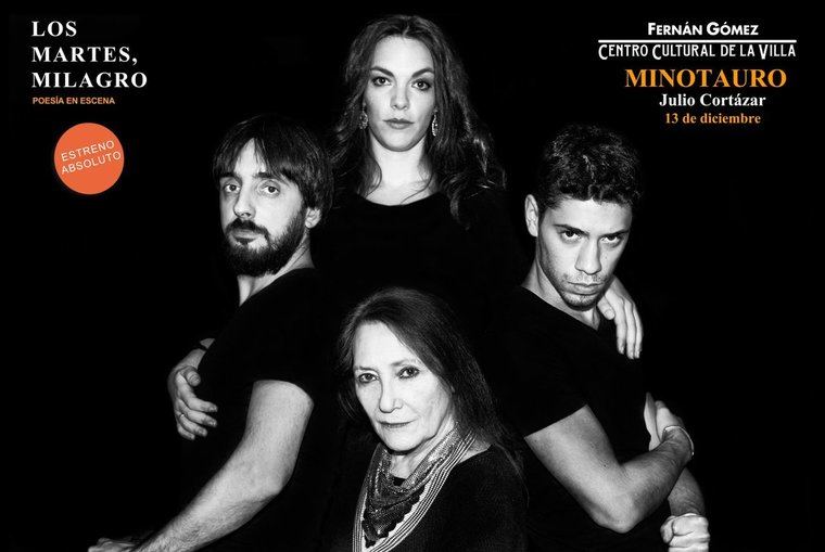 'Minotauro' es una dramaturgia de Carlos Jiménez basada en el cuento "Los Reyes" de Julio Cortázar, complementado con textos poéticos del autor. El montaje forma parte del ciclo 'Los martes, milagro. Poesía en escena' del Teatro Fernán-Gómez de Madrid, que trata de acercar la poesía al gran público revistiendo con dramaturgia determinados textos líricos. Son obras literarias que se convierten en montajes escénicos, donde la palabra, la música y los soportes audiovisuales conforman espectáculos cuya puesta en escena permite dar a conocer el trabajo de los grandes nombres de la literatura poética.