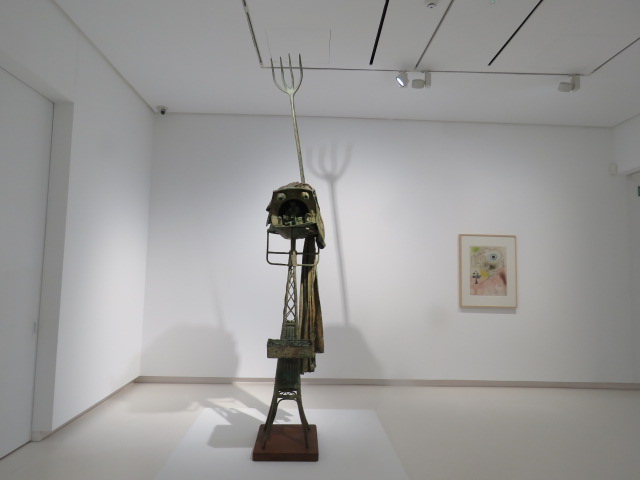 La muestra incluye diversas esculturas en las que el artista recrea, con su lenguaje poético único, un universo enigmático de seres teatrales, como en el caso de Gymnaste (1977), Jeune fille à l’étoile (1977), Danseuse (1981) o Le Chanteur d’opéra (1977). Para componerlas, Miró otorga a objetos cotidianos, tales como sillas, perchas o instrumentos de cocina, una nueva personalidad. El Chanteur Mongol (1971) recoge el timbre de la casa de Miró que sobre una masa de arcilla con un orificio inferior evoca una figura femenina.