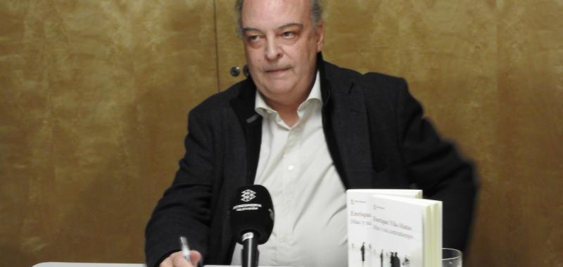 “El recuerdo y la repetición son el mismo movimiento, el primero para atrás y el segundo para delante”, razona el escritor. Su novela tiene ambas características ya que parte de una novela que escribió hace treinta años y que toma como espejo. “Esta novela ha supuesto el mayor reto que he emprendido, sobre todo la segunda parte del libro”, expone con su característica forma pausada de hablar. Se puede considerar el libro una novela pero, también, un ensayo y un dietario. Sin olvidar que podemos calificarlo de libro de cuentos por los que incluye en él.