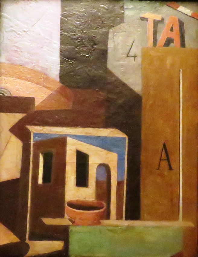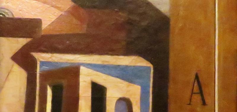 En la primera sección Metafísica del tiempo y del espacio, se exponen obras de Giorgio de Chirico y Carlo Carrà, dos figuras imprescindibles de esta tendencia. De Chirico presenta objetos cotidianos mezclados con elementos clásicos, vaciados de estatuas o bustos que remiten a ese sentido de lo antiguo que gustaba al pintor. Por su parte, Carrà presenta el tema del bodegón con una interpretación metafísica, una composición de objetos cotidianos incoherentes.