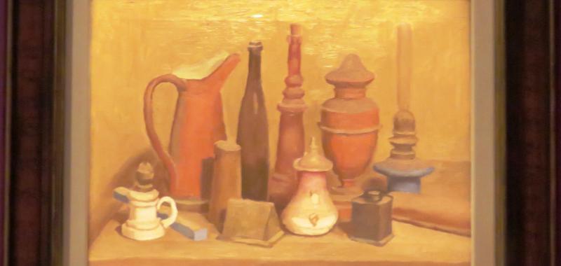 Esta mirada del paisaje tiene su contrapunto en la sección La poesía de los objetos, que es una manifestación de la naturaleza muerta y que refleja a la perfección Giorgio Morandi, que hace de este motivo el eje de toda su pintura.
