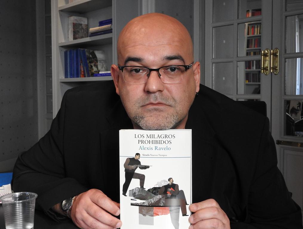 En su nueva novela también hay personajes que, más que molidos, terminan en las cunetas. En “Los milagros prohibidos”, Alexis Ravelo no hace bromas. Se ha vuelto más serio y mejor escritor. Alexis ha ido subiendo tres escalones desde que comenzó a publicar sus libros. En el primero están sus novelas negras que tienen por protagonista a Eladio Monroy. “Cuando escribí estas novelas era un auténtico gamberro”, reconoce entre risas el escritor canarión. Subió un segundo peldaño cuando publicó “La estrategia del pekinés” y las siguientes hasta “La otra vida de Ned Blackbird”, ahora vuelve a ascender un peldaño más con “Los milagros prohibidos”, su mejor obra hasta la fecha, la más seria, depurada, trabajada y con grandes dosis de sentimiento; donde el heroísmo cotidiano se sublima en aquellos alzados -republicanos- del comienzo de la Guerra Civil en la isla de la Palma.