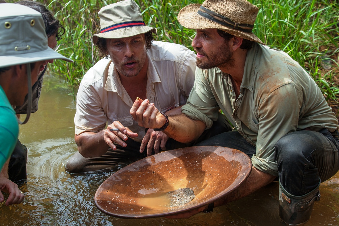 Matthew McConaughey, que una vez más demuestra que es uno de los mejores actores en la actualidad , sufrió una transformación física completa – con una cabeza calva y una dentadura desafortunada, además de una subida de 20 kilos ganados con una dieta de cerveza, hamburguesas con queso y batidos – para dar vida al personaje de Kenny Wells, un hombre criado en la industria minera, el tipo de hombre que no tiene miedo de ir a la montaña y excavar para encontrar su fortuna… pero en un negocio donde el azar puede marcar la diferencia entre una inmensa riqueza y el fracaso absoluto, la suerte no ha estado de su lado. Kenny encarna al espíritu emprendedor de América, una fe incuestionable capaz de superar todos los obstáculos.