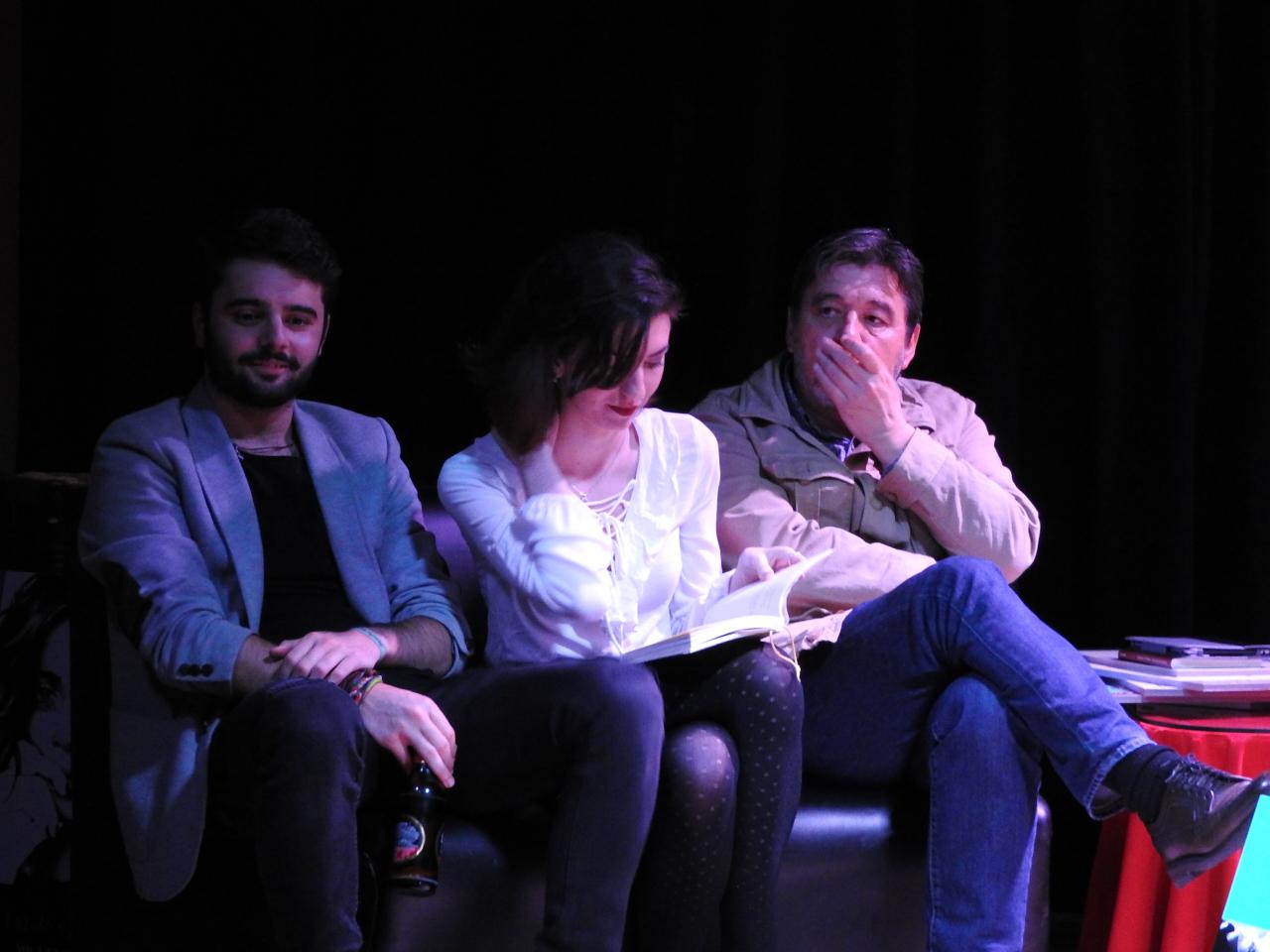 Karmelo C. Iribarren parecía un abuelo rodeado de sus nietos ante tanto poeta joven. Se la notaba encantado porque veía que sigue habiendo sabia nueva en la poesía y en el micro relato. Su libro es una delicia pop. Concisa y contundente como una buena canción de rock. Las sinfonías se las dejamos para los más viejos. Y sus aforismos son de lo mejor que se ha escrito en esta piel de toro en las últimas décadas. Pasarán los años pero el que tuvo, retuvo y el es un ejemplo a la hora de retener. Además, la edición del libro es soberbia, con un diseño muy moderno, mejor que la que han hecho a alguno de los que le acompañaron en el escenario.