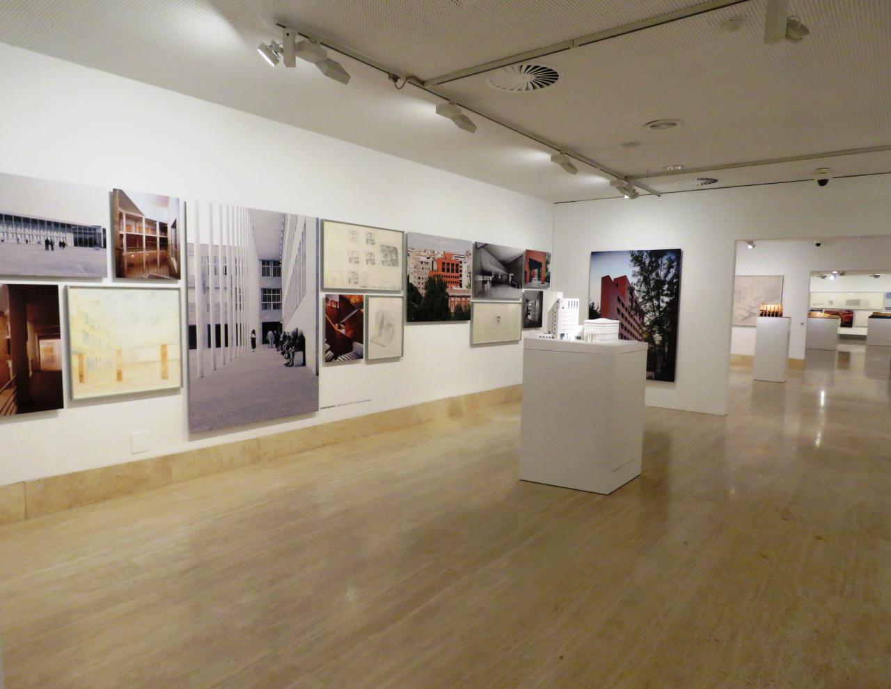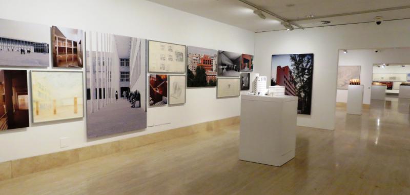 Comisariada por Francisco González de Canales, profesor de la Universidad de Sevilla y de la Architectural Association de Londres, la exposición, coproducida por la Fundación Barrié, el Estudio Rafael Moneo y el Museo Thyssen, reúne una selección de 121 dibujos, 19 maquetas y 152 fotografías de un total de 52 proyectos emblemáticos del arquitecto. Además, coincidiendo con el 25 aniversario del Museo, la exposición cuenta con una pequeña muestra, comisariada por el arquitecto José Manuel Barbeito, que recoge la historia del Palacio Villahermosa desde mediados del siglo XVIII hasta su transformación, en 1992, para convertirse en el Museo Thyssen-Bornemisza.