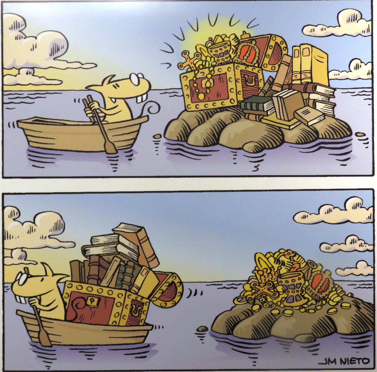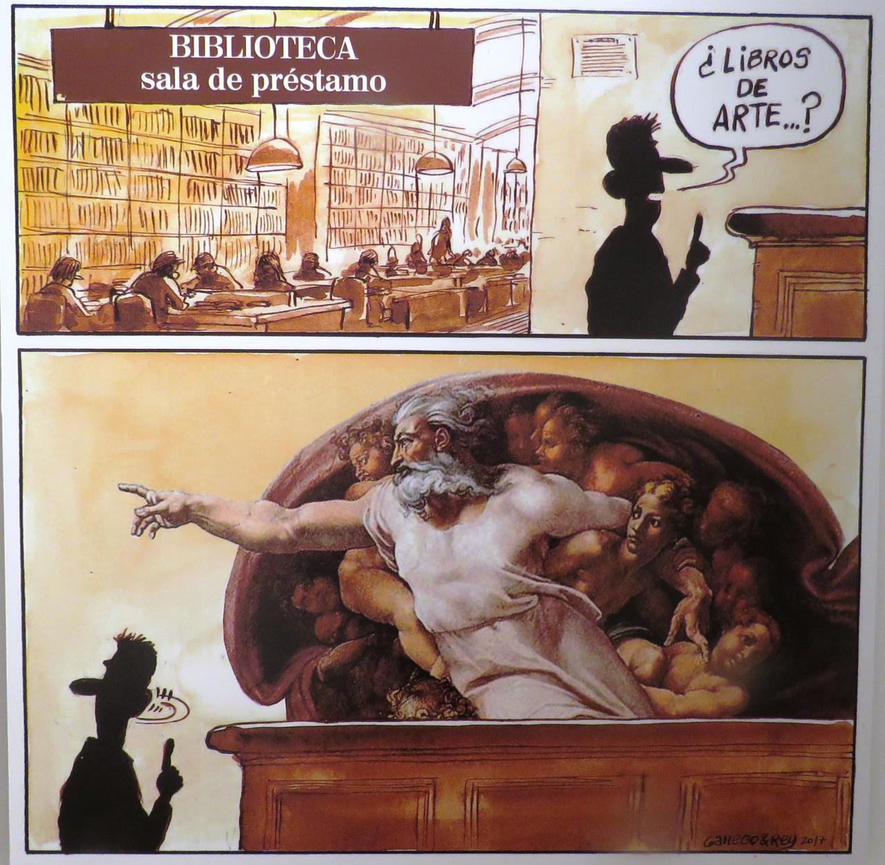 La exposición ¿Qué es una biblioteca para ti? está coorganizada por la Biblioteca Nacional, el Instituto Quevedo del Humor, la Universidad de Alcalá de Henares y la Fundación ACS. En ella se podrán contemplar 20 viñetas en las que 20 humoristas gráficos de diferentes diarios de ámbito nacional y regional dan su visión particular de qué es la biblioteca para ellos. La muestra, que se lleva a cabo en el marco de las actividades que se realizan con motivo de la semana del libro, podrá verse en la Sala Polivalente del Museo de la BNE.