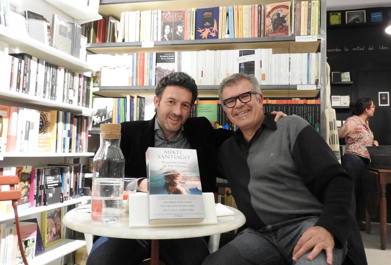 Mikel Santiago es un escritor muy viajero. Ha vivido en Irlanda, y escribió “La última noche en Tremore Beach”, ha viajado por la Provenza y escribió “El mal camino”, ha viajado por Italia y escribió “El extraño verano de Tom Harvey”, ha vivido cuatro años en Ámsterdam y escribió… bueno todavía no ha escrito nada sobre la ciudad holandesa pero algo del ambiente jazzístico que se vive allí lo ha trasplantado a su última novela. No nos extrañaría que escribiese algo sobre la capital holandesa o sobre el Bilbao en el que vive. Parece que le cuesta abrir la ventana de su casa y escribir sobre lo que ve todos los días. Quizá por eso, si pidiese un cheque en blanco a su editorial para escribir un libro sería para componer un libro de viajes, algo que le apasiona ya que es un gran viajero y ha vivido fuera de su tierra más de diez años. Esperemos que cuando le den el cheque en blanco no se les olvide firmarlo.