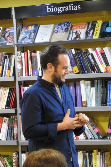 Después tomó la palabra el mago –por decir algo- Jorge Blass, con el cual estoy muy enfadado ya que no he podido acabar de leer el libro por su culpa, ya que me lo quemó delante de todos y encima se sonreía el muy ladino. Luego realizó otro conocido truco que sólo él es capaz de realizar, lo reconozco, aunque me duela, que nos dejó a todos con la boca abierta. Ya son ganas de multiplicar números a lo tonto para encontrar un significado. “En la Edad Media, quemaban a los magos en la hoguera”, recordó el mago. Pero él, quema los libros en la librería. Poco hemos avanzado, bueno sí, por lo menos, tenemos más humor. El que hace gala este magnífico mago madrileño.