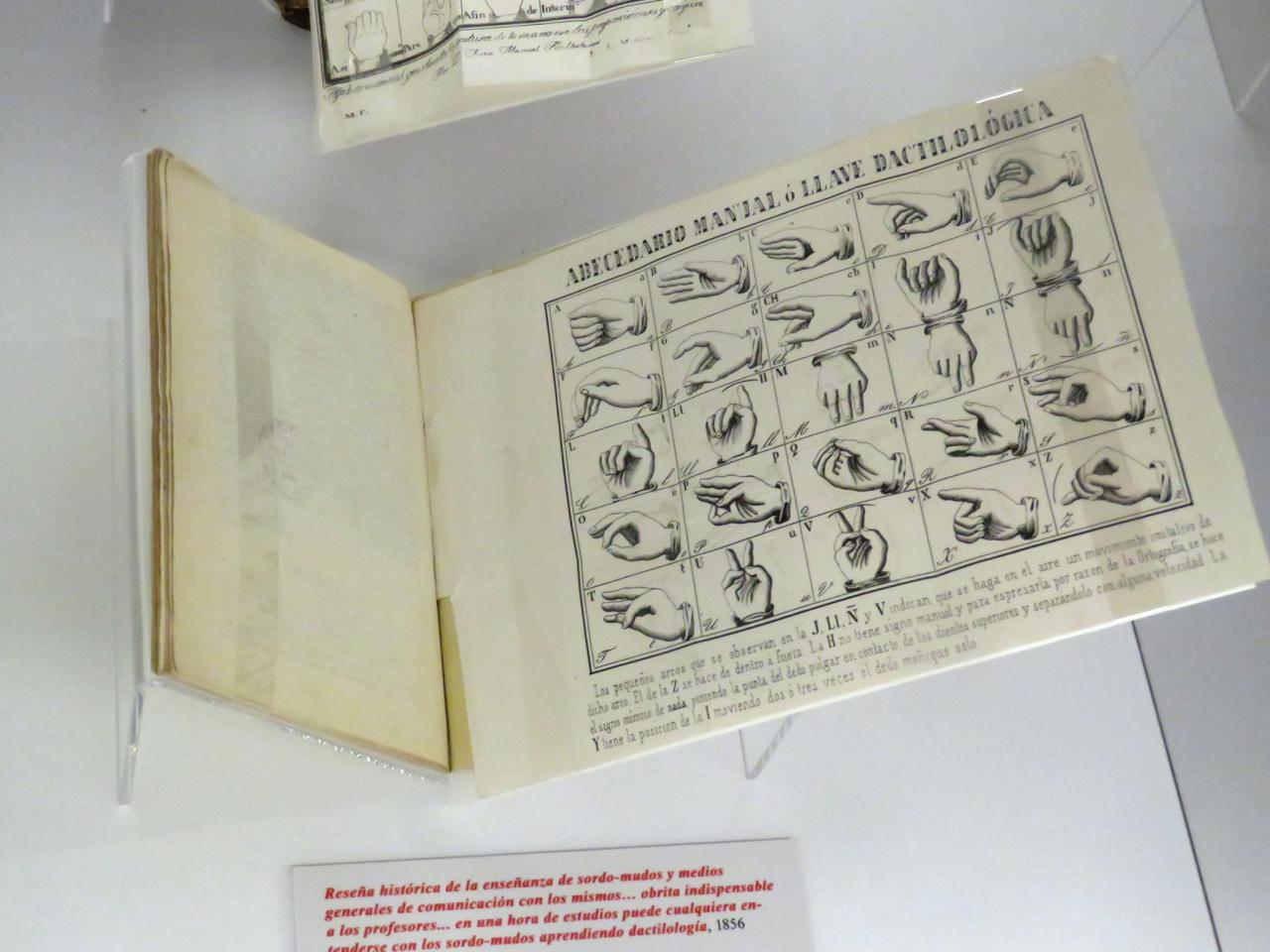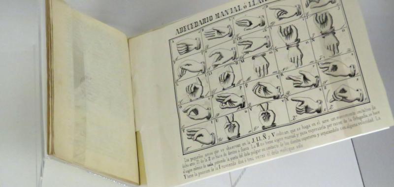 Conmemorando el décimo aniversario de la promulgación de la Ley 27/2007, por la que se reconoce la lengua de signos española (L.S.E.) y la lengua de signos catalana (L.S.C.) en nuestro país, la muestra recorre más de cuatro siglos de historia empezando por el primer manuscrito conservado en los fondos de la BNE, Tratado legal sobre los mudos (1550). Escrito por el Licenciado Lasso, la obra pretende defender los derechos sucesorios del segundo hijo del Marqués de Berlanga, de modo que pudiese heredar un mayorazgo a pesar de ser sordo.