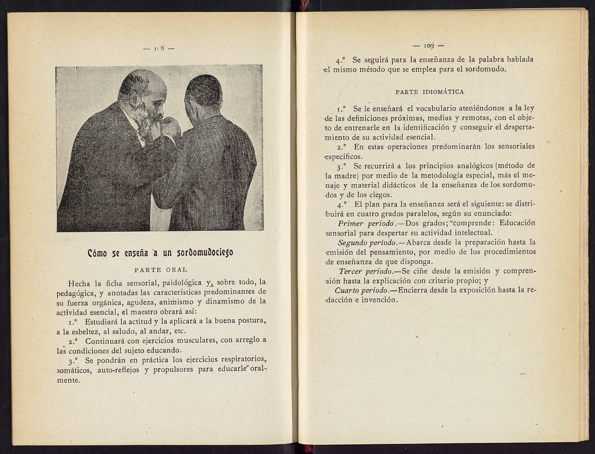 La exposición reúne más de cuarenta piezas, principalmente, de la propia BNE, pero también de algunas otras instituciones, como el Museo del Prado o la propia CNSE, divididas en tres secciones: Para enseñar hablar a los sordomudos. Alfabetos manuales y otros sistemas, Centros educativos especiales. Los colegios de sordomudos y ciegos en España, y Novedades pedagógicas, bilingüismo y la LSE como lengua materna.