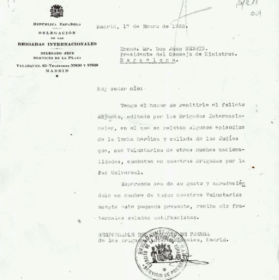 Defender la memoria y honor de los voluntarios brigadistas judíos es hacerlo con la II República y la legalidad de su Constitución de 1931.