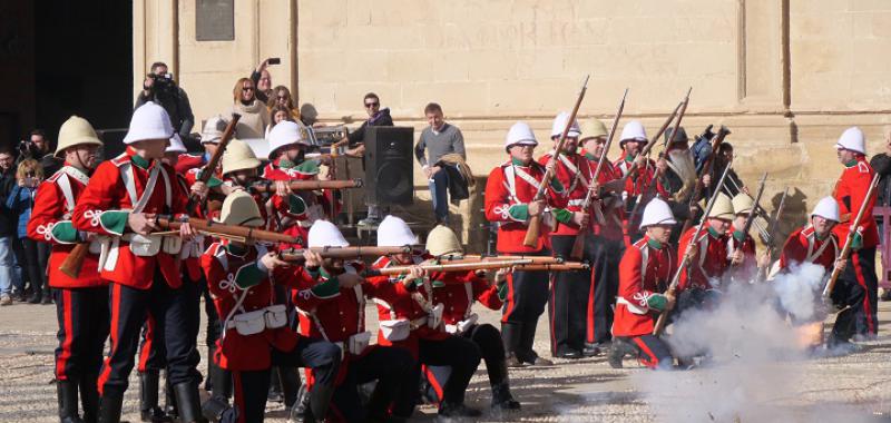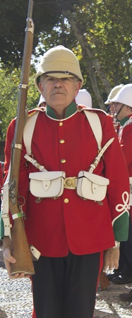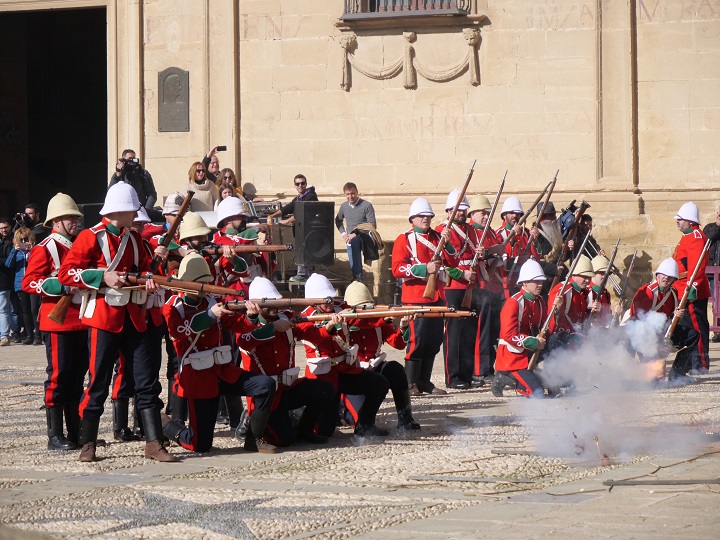 Pero lo mejor del certamen, en mi modesta opinión, fue la recreación de la batalla de Isandlwana y no porque yo participase. Se suponía que iban a venir auténticos zulúes, pero al final no pudieron hacerlo. No importó. Pablo Lozano sustituyó con éxito a las tropas zulúes por asistentes al evento. David, Fernando y yo nos vestimos de soldados británicos. A mí, tuvieron la deferencia de darme un salacot teñido con te, ¡what british! Y ni cortos ni perezosos nos entrenaron con el fúsil que nos dieron. Empotrado en medio de la columna inglesa, con nuestros elegantes trajes rojos, más bien parecíamos embajadores en cualquier corte oriental, luchamos valerosamente contra esas hordas africanas que ponían caras de malas pulgas. Nuestro sargento no paraba de decirnos que no nos riésemos, que pusiésemos cara de susto y así lo hicimos cuando nos vimos rodeados por los zulúes. La mayor derrota del ejército británico en el continente africano, fue nuestro mayor triunfo como actores de reparto, incluso nuestra muerte fue más que digna.