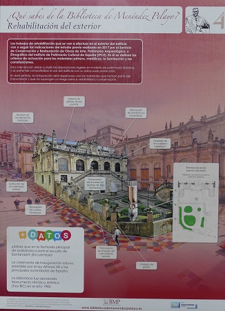 Un texto que figura en su página web, titulado “La rehabilitación integral de la Biblioteca de Menéndez Pelayo comenzará a finales de año” (¿de qué año?), indica textualmente que, financiada por el Ministerio de Fomento, la obra “dará comienzo a finales de 2018 o principios de 2019, de manera que, tras casi un año de obras, reabrirá sus puertas en los últimos meses del próximo año”. Es decir, que ya debería estar abierta, puesto que estamos en diciembre de 2019. Sin embargo, nada indica que vaya a ser así.
