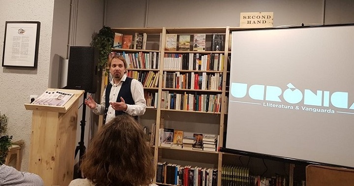 Agustín Zacarés, codirector de la revista, fue el maestro de ceremonias, quien se encargó de dirigirse a los asistentes para presentar el nuevo número de Ucrónica, así como de mostrar algunas de las secciones de la revista y explicar sus contenidos.