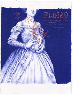Manuel Gil ensalza del estilo de Nuria Riaza “el toque inquietante y surrealista: ya sea en sus conocidas ilustraciones a base de Bic azul o en sus collages, siempre tiene un punto misterioso”. La ilustradora, que ha convertido el bolígrafo en su herramienta de trabajo, “eleva su trazo a la categoría de Arte, usando una técnica de ilustración analógica en tiempos de herramientas digitales de diseño y creación”. Esa originalidad a contracorriente dota de una gran fuerza a su composición “aparentemente sencilla, con muy pocos elementos”, consiguiendo “un fresco coral que captará a buen seguro la atención del visitante de la Feria y que gustará a toda la sociedad lectora”. A todas las virtudes citadas, Gil añade “la calidad del dibujo, su potencia figurativa y sugestiva, y la intensidad cromática de la ilustración, que determinan una identidad visual muy armónica”.
