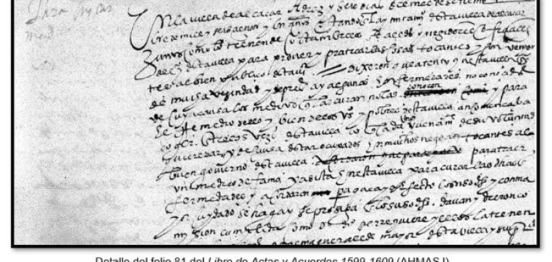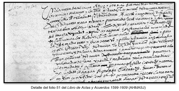 Alcázar de San Juan, el lugar de don Quijote, la villa con más habitantes de la comarca cervantina cuando Cervantes estaba escribiendo su primer Quijote, unos 9.000 habitantes, contaba con el servicio de varios médicos. En 1601, ante las nuevas enfermedades que estaban padeciendo sus vecinos sus alcaldes y regidores se reúnen en la torre del ayuntamiento para “prover y praticar las cosas tocantes y convenientes al bien publico” y “[…] dixeron que atento que esta villa es de mucha vecindad y que puesto ay algunas enfermedades no conocidas de cuya causa los médicos que las curan no las conocen [acuerdan] traer un médico de fama y asista en esta villa para curar las dichas enfermedades” (AHMASJ). En el acta nombran a cuatro comisarios, entre los alcaldes y regidores, para que hicieran las diligencias oportunas para traer a dicho “médico de fama” y tratar su salario. Al margen del folio 81 se puede leer: “Para buscar medico”.