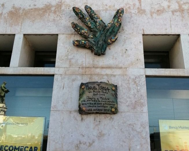 Saliendo de la librería nos dirigimos hacia el Largo de Portagem, para homenajear a uno de nuestros escritores más queridos: Miguel Torga. El poeta y médico portugués era de la zona fronteriza de Trás-os-Montes, de la que tomaría el apellido de su seudónimo, con el nombre haría lo mismo y su seudónimo es una deferencia a escritores como Miguel de Cervantes y Miguel de Unamuno, ambos muy queridos po él. Adolfo Correia da Rocha que ese era su verdadero nombre, vivió varios años en Brasil, pero al regresar a Portugal decidió establecerse en Coimbra, donde moriría.