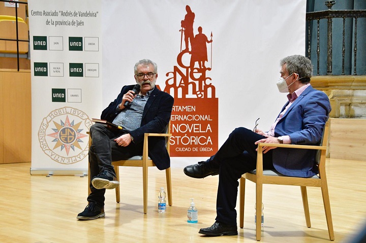 Para quienes no conozcan a Santiago Posteguillo recordar que tiene tras de sí catorce años de actividad literaria, pues publicó su primera novela de ficción “Africanus, el hijo del cónsul” en 2006. Desde entonces sus novelas han cosechado numerosos premios tanto nacionales como internacionales, por lo que han sido traducidas a diferentes idiomas, entre los que se encuentran el francés, italiano, árabe, alemán o polaco, por citar algunos ejemplos. No es la primera vez que el autor viene como invitado al Certamen de Novela Histórica, ha recordado el director de la cita literaria, pues está ligado al “Ciudad de Úbeda” desde 2012 cuando publicó “La noche en que Frankenstein leyó el Quijote” con la que inició la trilogía de libros sobre la historia de la literatura, y que presentó en el marco de la primera edición del Certamen de Novela Histórica, acto que fue presentado por el escritor ubetense Jesús Maeso, quien ha apoyado la cita desde sus inicios y que este es el segundo en el que no estará presente, por la crisis sanitaria, ha puntualizado Sanfrutos. Una participación difícil de olvidar pues Posteguillo—filólogo, lingüista y doctor por la Universidad de Valencia además de profesor titular en la Universidad Jaume I de Castellón, donde imparte clases de lengua y literatura inglesas, con atención especial a la narrativa inglesa del siglo XIX, el teatro isabelino y la relación entre la literatura inglesa y norteamericana con el cine, la música y otras artes—hizo de traductor en la presentación de “Pretoriano” de Simon Scarrow, dando lugar a un espectáculo literario, un mano a mano entre dos grandes autores. Asimismo Posteguillo también participó en la edición de 2016, en la que presentó “La legión perdida”, una magistral exposición pues en sus conferencias, como subraya Sanfrutos, siempre queda palpable una colosal erudición”. En esta edición atípica no ha querido faltar para presentar su última novela “Y Julia retó a los dioses”. En la presentación, contó con la ayuda del periodista y escritor Javier Velasco Oliaga con el que mantuvo un interesante diálogo sobre su obra para, posteriormente, moderar el turno de preguntas de los asistentes al acto. En la última novela del escritor valenciano se habla del cáncer, de la xenofobia, de una mujer en un mundo de hombres, de la lucha constante por el poder político… y sí, curiosamente de una pandemia. Trabajo en el que desvela con meridiana claridad cómo el poder político de la época, en este caso encarnado en el emperador Severo y la emperatriz Julia, sometió muy rápidamente la autoridad imperial a la autoridad sanitaria de entonces. Pero también está presente en este certamen para recibir el premio “Ivanhoe”, una distinción que viene a reconocer la trayectoria y aportación personal de algunos autores a la novela histórica, tanto en el ámbito nacional como internacional. Un reconocimiento del que, dijo, le hace ilusión por partida doble, ya que por un lado lleva el nombre de una de las más grandes novelas de Sir Walter Scoot, del padre de la novela histórica moderna y por otro, porque se entrega en Úbeda, una ciudad en la que se ha consolidado una cita dedicada a la novela histórica, donde organización, público y administraciones están de acuerdo en que hay que seguir haciendo cultura, porque con la cultura la vida es mucho menos dura”, ha sentenciado Posteguillo. No obstante, el Premio Planeta 2018 ha comenzado su intervención con unas palabras de agradecimiento hacia la organización por mantener el certamen a pesar de las dificultades. Agradecimiento que ha hecho extensivo al público por su presencia, pues como ha subrayado “hay que seguir haciendo cultura, algo que se ha hecho con guerras y pandemias, pues es nuestra obligación mantener viva la llama de la cultura”. Premio que le vincula más a la ciudad y a su Certamen de Novela Histórica, pues como ha reconocido “tengo la suerte de compartirlo con autores de la talla de Jesús Maeso y de Simon Scarrow, y ha concluido afirmando que “espera poder venir muchas más veces”. Por su parte la concejal de Cultura, Elena Rodríguez ha agradecido el tesón demostrado por la organización de la cita, pues hasta hace dos días, debido a las nuevas medidas adoptadas no se sabía si finalmente se podría celebrar el Certamen de Novela Histórica. Una organización, ha reconocido la edil, agotada pues no es la única cita cultural que impulsa en la ciudad y por los cambios que han tenido que realizar en la programación a última hora. Esta novena edición será recordada por todos, no solo por la pandemia sino porque ha habido valientes que en estas condiciones han apostado por la cultura—respetando todas y cada una de las medidas de seguridad y las normas dictadas tanto por el Ministerio de Sanidad como por la Junta de Andalucía—con la que han llevado luz, alegría y aportado esperanza a muchas personas. Además ha querido recordar que la Administración local ha apostado en estos meses por la cultura y por apoyar a todas y cada una de las asociaciones y colectivos que impulsan en la ciudad distintas actividades culturales, en un año en que la apuesta por la cultura es mucho más importante que nunca, ha concluido Rodríguez.