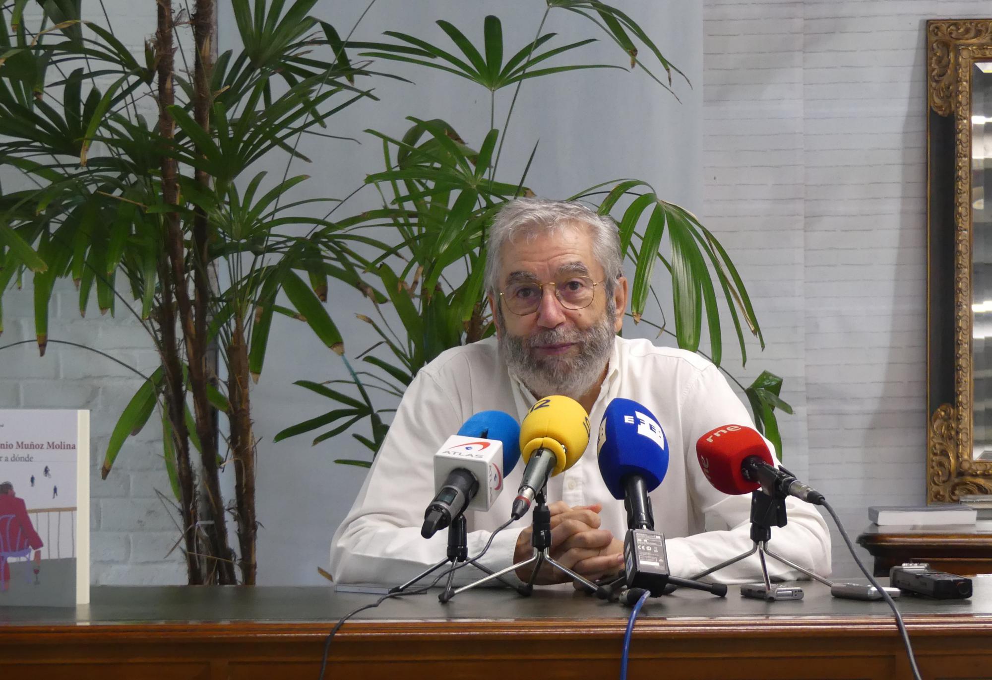 “Los hechos tan excepcionales como los acaecido en la reciente pandemia o se cuentan enseguida o quedan lejos en poco tiempo”, afirmó el autor en la rueda de prensa donde presentó su nuevo libro “Volver a dónde”. Pregunta que nos hacemos todos y que no sabemos todavía si queremos volver al mundo en que vivíamos antes de la pandemia o preferimos un mundo mejor, más solidario y sociable. “Volver a dónde” es un libro que está escrito en tres planos temporales. El primero es el diario del confinamiento, que está regido por el miedo al porvenir; el segundo se desarrolla unos meses después y está gobernado por la incertidumbre, no sólo de lo que pasará sino también nos cuestionamos de lo que hemos hecho bien o mal, y el tercero es una introspección al pasado del autor, una rememoración de su infancia y a lo que le contaron sobre el pasado sus padres y su tío. Unos recuerdos familiares que hay que preservar del olvido, “antes de que desaparezca de nuestras memorias”. Para Antonio Muñoz Molina, “en la literatura de ficción, el autor es absolutamente libre, pero hay otra literatura que se hace en los periódicos que no tiene esa libertad porque ha de ceñirse a los hechos, pero que tiene la misma belleza y que busca la armonía. Tiene un carácter de testamento. Mucha de la mejor literatura que se hace está en las crónicas de los periódicos. Podríamos poner como ejemplo a Manuel Chaves Nogales o Josefina Carabias”. Durante la charla añadiría casi de pasada a Josep Pla, otro maestro del estilo periodístico-literario. Esa literatura escrita en los periódicos, en ocasiones, es mejor que la literatura oficial de los libros. “Me gusta inventar, pero también no inventar”Al escritor jienense, le gusta tanto inventar personajes y tramas para sus novelas como no inventar en sus crónicas periodísticas o en libros donde priman lo que ve. Le gusta ser testigo del presente. “En Volver a dónde, utilizo mis cualidades narrativas para dejar testimonio de lo que va pasando cerca de mí. Aquí no puedo inventar. Si inventase estaría faltando a mi responsabilidad como escritor. He querido dejar constancia de las cosas concretas que viví”, explica de manera pausada y razonada. “Cuando viví el 11-S no quería interpretar lo que estaba viendo, sólo quería atestiguar lo que veía, dar testimonio. Sé que cuando el tiempo pasa, nuestros recuerdos se van transfigurando. Cuando se vive en el presente, no sabemos lo que va a venir después porque enseguida desaparecerá. Estos hechos excepcionales se quedan lejos casi en el momento en que han pasado. Sin embargo, en la novela, la historia se cuenta a través de los personajes”, desmenuza con precisión el autor.