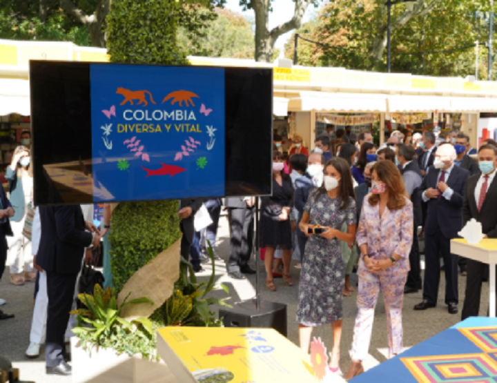 Durante su recorrido, la Reina Doña Leticia se detuvo unos minutos en el pabellón de Colombia para conocer de primera mano la propuesta que trae este país a la feria y apreciar su colorido y diversidad. También, conversó brevemente con algunos de los representantes colombianos quienes le explicaron los objetivos de este país en el evento, de difundir y exhibir a todos los madrileños la riqueza de su patrimonio cultural y natural a través de la literatura, el cine, la pintura, la música y otras expresiones artísticas.