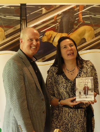 Durante el acto de presentación estuvo acompañada por la responsable de la Fundación ONCE del Perro-Guía María Jesús Varela que calificó a la novela como “muy oportuna” y añadió que “ahora que estamos viviendo una situación de guerra y que están llegando a nuestro país muchos refugiados desde Ucrania nos damos cuenta de la importancia de que estas personas se sientan muy acogidas”.