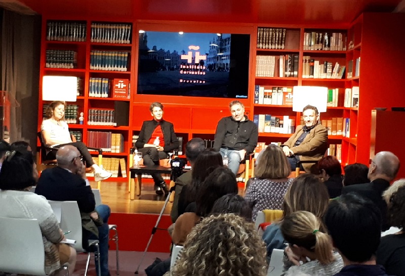 Esta es la Brigada del Delito encargada de las investigaciones: la Superintendente Ana Vázquez-Barrado, Directora del Instituto Cervantes de Bruselas; el Comisario Jefe Gonzalo del Puerto, Jefe de Actividades Culturales, y los Investigadores Carlos Zanón y Ángel Hernando (Moderadores, digo, portavoces de la Brigada).