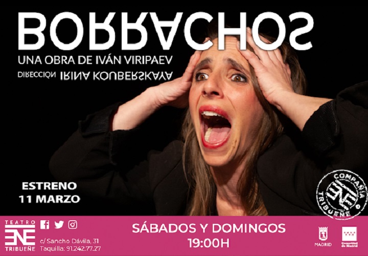 Irina Kouberskaya vuelve a dar en el clavo en la elección de esta obra de teatro que tan bien representa el alma humana en la actualidad, y no solo eso, porque nos vuelve a demostrar el gran estado de forma en su capacidad a la hora de visualizar los textos que selecciona, porque en Borrachos nos vuelve a dejar ese poso de gran directora teatral que es, transformando lo poco en mucho, y lo sencillo en magistral, para de esa forma, atrapar a todas aquellas almas sensibles que presencien este espectáculo coral y único de una compañía de repertorio extraordinaria que, en su vigésimo aniversario, nos demuestra su capacidad de sobreponerse al paso del tiempo. En este sentido, hay que hacer mención a los actores y actrices que conforman la compañía y, en concreto al elenco de Borrachos, con un David García que nos vuelve a atrapar por la gran capacidad de sus gestos, su intensa mirada y esa forma tan nítida de interpretar sobre el escenario. Su Mark, sin duda, siempre estará en nuestro recuerdo. Del mismo modo, que hay que resaltar a esa vagabunda que todo lo ve y lo oye desde el silencio; una vagabunda interpretada por Inma Barrionuevo que, cada vez más, alcanza una madurez sobre las tablas digna de mención y elogio, pues su figura en esta obra es como la luna que brilla en la noche y ejerce de espectadora silenciosa del gran drama del mundo. Una interpretación que borda a través de sus gestos de asombro, gozo o lucidez ante lo que va viendo y escuchando. El resto del elenco está a gran altura, como en las obras que han ido interpretando a lo largo de los años sobre las tablas del Teatro Tribueñe. Sin desmerecer a ninguno de ellos, hay que destacar a José Manuel Ramos en su Rudolph, que navega por la mentira y el absurdo, y al que da respuesta un estupendo Enrique Sánchez como Gustav, o a Badia Albayati con su enérgica y arrebatadora Rosa.