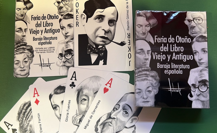 La feria, que cuenta con la presencia de un total de 32 librerías españolas, ofrecerá a los madrileños y visitantes la ocasión de adquirir desde libros a precios muy económicos hasta auténticas joyas bibliográficas. Los libreros asistentes sacarán a la calle sus fondos bibliográficos y pondrán a disposición del público una gran variedad de ejemplares, con precios desde un euro hasta los más codiciados libros antiguos, sueño de bibliófilos, como primeras ediciones, incunables, manuscritos originales, grabados, ediciones raras, etc. La 33ª Feria de Otoño del Libro Viejo y Antiguo de Madrid, se celebrará en el madrileño Paseo de Recoletos en horario de once de la mañana a las nueve de la noche. Las casetas comienzan en Cibeles y llegarán hasta la altura de la calle Almirante. El pregón inaugural tendrá lugar el jueves 28 a las 20.30 horas en la terraza del Gran Café El Espejo (Paseo de Recoletos, 31) y correrá a cargo de la escritora María Dueñas. Beatriz Miguel, presidenta de LIBRIS explica que “tras el éxito obtenido en la edición anterior volvemos con mucha ilusión. Pondremos a disposición del público más de medio millón de libros al alcance de todos los bolsillos y de todas las temáticas, tanto en ediciones de bolsillo y libros descatalogados, como en ricas y cuidadas encuadernaciones; desde el más curioso libro infantil, pasando por ediciones de época de autores del Siglo de Oro, hasta sencillas revistas antiguas”. Baraja de literatura españolaUna de las principales novedades de esta edición, es la producción de una baraja literaria con los escritores y escritoras españoles más importantes de todos los tiempos. Se trata de una baraja de póker de 55 cartas, está ilustrada por Fernando Vicente y producida por Naipes Heraclio Fournier. Están representadas figuras tan destacadas como Miguel de Cervantes, Antonio Machado, Emilia Pardo Bazán, Federico García Lorca, Carmen Laforet, Gloria Fuertes, o Benito Pérez Galdós, entre otras muchas. Se podrá adquirir en la caseta de información de la feria.