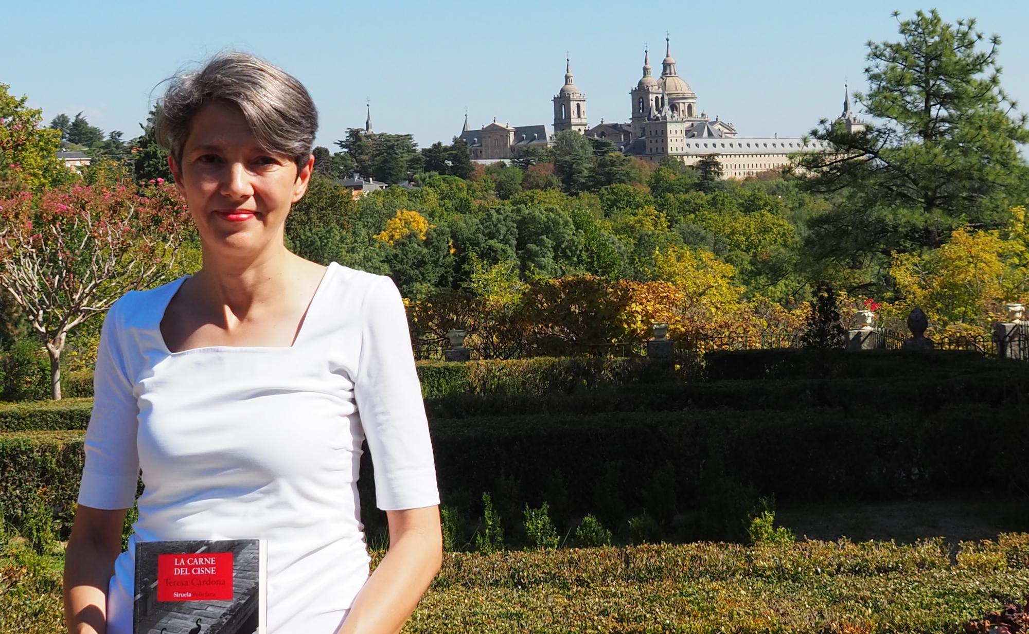 Para asistir a la presentación de esta nueva novela, que publica Ediciones Siruela, nos trasladamos hasta los escenarios de la trilogía (hasta el momento) de Teresa Cardona. La rueda de prensa se celebró en la Casita del Infante don Gabriel, hijo de Carlos III, para muchos el hijo inteligente que desgraciadamente no llegó a reinar, siento Carlos IV el que lo hizo, para desgracia del país y los españoles. El infante don Gabriel mandó al arquitecto Juan de Villanueva la construcción de una villa italiana para su recreo. “La casita tiene una sonoridad espléndida”, apunta uno de los responsables del Patrimonio Nacional. Como le gustaba mucho la música, hizo que le preparasen una caja de resonancia para que se oyese la música desde todo el jardín, donde disfrutaba de un ligero asueto que no podía tener en el monasterio de El Escorial. Para Ofelia Grande, la editora de la autora madrileña, “Teresa se va superando con cada libro y trata temas cada vez más complicados”. La violencia entre mujeres o el ciberacoso están presente en “La carne del cisne”. Cardona refleja en sus novelas dos mundos diferentes: por un lado, el de las personas que viven en localidades no muy grandes y, por el otro, las personas que vienen de grandes capitales o del extranjero. “Cuando regresé a España y me establecí en San Lorenzo del Escorial, el choque entre esos dos mundos era evidente: los habitantes del pueblo tenían un código diferente. Las calles no eran conocidas como el callejero indica, sino por los nombres antiguos que tuvieron”, cuenta la escritora. En la novela, además de la investigación que realizan los guardias civiles, Teresa Cardona se detiene en los problemas cotidianos de los habitantes. “Además, en esta ocasión, no he querido presentar a la víctima desde un primer momento. Tenemos unas cincuenta hojas hasta que aparece; mi intención es que el lector se enfrente a la personalidad de los protagonistas sin conocerlos realmente. Mi intención es hacer dudar al lector desde el primer momento; también creo que ayuda el título ambivalente de la novela. Esos dos cisnes existen en la realidad; cuando me topé con ellos, los quise sacar en la portada”, recuerda con pasión. “En esta ocasión, me ha salido un libro bastante violento, pero hay que hacer la salvedad de que hay diferentes tipos de violencia a los que intento enfrentarme sin prejuicios. Esas situaciones me han dado la posibilidad de hacer discutir a mis guardias civiles, para intentar convencerse unos a otros. Lo que a mí me gusta es que la gente dialogue y se quieran convencer”, reflexiona la autora. “A los lectores de novelas policiacas lo que les gusta es sufrir un poco”“El lector de este tipo de novelas lo que espera es que se le mantenga con una cierta tensión. Lo que le gusta es sufrir un poco”, afirma Teresa Cardona. Quizá por eso siempre escriba sus novelas con dos tramas bien diferenciadas, pero que terminan convergiendo. Así crea esa necesidad de mantener al lector ocupado en ellas y pasar de una a otra con celeridad. “Una parte de la novela se desarrolla en los años 80. Intento que el lector se meta en dichas escenas con otros ojos diferentes”, subraya. La trama de “La carne de cisne” comienza cuando la teniente Karen Blecker contempla la espesa niebla del invierno de San Lorenzo de El Escorial: no espera que su rutinario desayuno con su compañero el brigada Cano se vea bruscamente interrumpido por la aparición de un cadáver en uno de los chalets de la carretera que conduce al club de golf de la localidad.