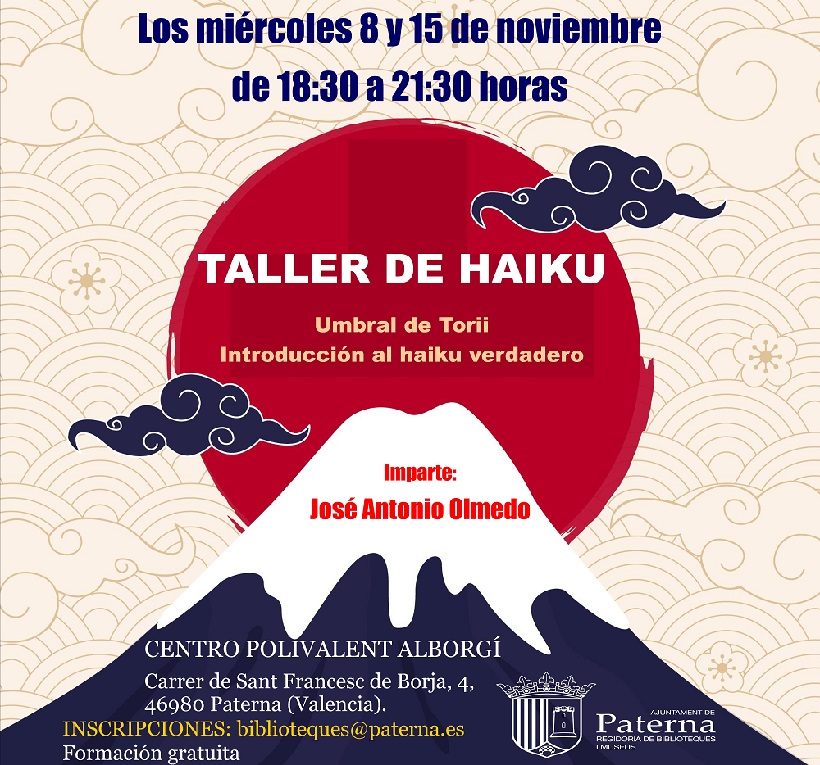 Esta es una oportunidad única para conocer la belleza y las singularidades de esta popular estrofa nipona de la mano de uno de sus mayores expertos. Olmedo imparte talleres literarios desde 2017, es autor de catorce libros, dos de ellos de haiku, fue alumno del maestro Vicente Haya y, como primicia, según la entidad organizadora, presentará en la segunda jornada del taller su primer libro sobre preceptiva de haiku.