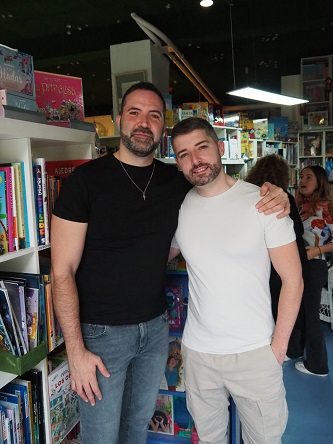 El nombre de la librería surgió por la película de animación española que se estrenó en 1998, donde nos traslada a mundo de brujería en África. Fue en 2003 cuando Esther abrió el establecimiento dedicado a la literatura infantil y juvenil. Ediciones Destino se fijó en ese espacio mágico para celebrar ese millón de ventas que muy pocos autores consiguen. Una cifra mágica al alcance de escritores privilegiados. El club del millón. ¡Qué mejor sitio que ese lugar para continuar con la magia de Anna Kadabra! Ambos autores se plantearon la siguiente pregunta cuando comenzaron a pergeñar a sus personajes: ¿Y si las brujas fueran las buenas del cuento? Ahí, radica el éxito de sus libros. “Desde luego, no hemos sido los primeros en plantearse esa pregunta; pero sí, lo hemos resuelto de una forma diferente. Empleamos mucho color en nuestras obras. Colores de nuestro arco iris, que tiene diez. Incluyendo los de la magia blanca, negra y rosa”, dice Pedro Mañas con emoción. Ambos autores se conocieron hace 14 años cuando David Sierra buscaba un guionista para un cuento para el trabajo final de la Escuela de Arte Número Diez. Allí comenzó su amistad y, posteriormente, su colaboración en los libros de Anna Kadabra. “Pedro Mañas y su editora Anna Casals buscaban un ilustrador. Me hicieron una prueba y surgió el flechazo, como lo expresa ella misma”, cuenta David Sierra. La serie de Anna Kadabra se presentó el 19 de febrero de 2020. “Unos días antes del comienzo de la cuarentena. Se puede decir que es un producto del encierro del COVID. La protagonista es una niña normal, con una vida cotidiana. Sus padres se fueron de la ciudad a un pueblo para abrir una pastelería. Hasta allí, fue ella con su gato Cosmos, que es quien la elige para convertirse en bruja. Pese a eso, es una obra coral. Anna es la narradora, lo que cambia con respecto a la serie de Marcus Pocus, donde el narrador es él”, relatan a unísono. Para los autores, “los libros de Anna Kadabra son una de las primeras sagas españolas que tienen el efecto fan. Es muy curioso ver cómo los niños se disfrazan de los personajes de la serie. Estamos muy sorprendidos porque los pequeños no son los únicos que nos leen, también lo hacen los adolescentes e, incluso, adultos, sin hijos. Y, ahora, es todo un éxito internacional. Por ejemplo, en Italia se ha publicado casi tanto como en España”. Para Pedro Mañas, “es importante mantener el alma joven para escribir ficción infantil. Yo la conservo”, y David Sierra reconoce su influencia “del manga japonés. Antes tenía un estilo más europeo, pero han ido evolucionando en los colores, característicos para cada uno de los personajes y en rasgos como los ojos que han ido agrandándose desde los primeros volúmenes”.