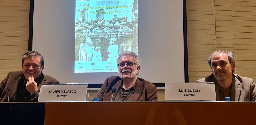 Durante el mes de noviembre se viene celebrando en la Biblioteca Regional Joaquín Leguina las VII Jornadas Madrileñas de Novela histórica que dirige Carolina Molina. Este jueves le ha llegado el turno a la mesa "Novela histórica, ¿para qué?", con la presencia de Luis Zueco, David Yagüe y Javier Velasco Oliaga. Azucena del Valle estuvo allí con sus amigas la Puri y la Vani y nos lo cuenta en exclusiva.