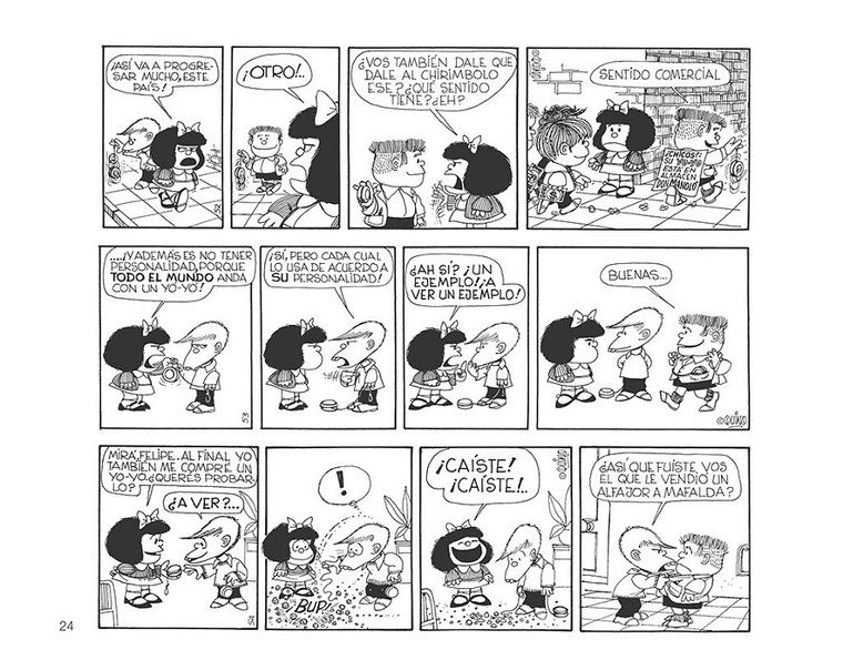 Quino dibujó a Mafalda durante diez años: casi 2.000 tiras, tras lo cual sintió que empezaba a repetirse y que lo honesto era dejar de recrear al personaje. Así pudo dedicarse de lleno a su obra de humor gráfico. Ha vendido millones de ejemplares y ha sido traducido a más de 20 idiomas.