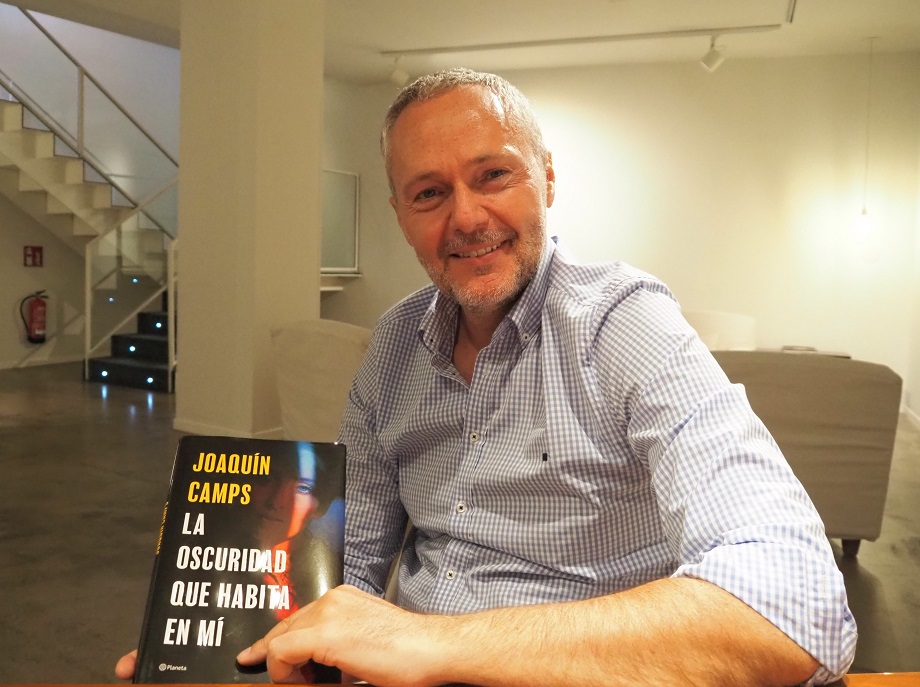 Ha tardado casi cinco años en sacar su nuevo libro en Planeta, el tercero. Después de ganar el Premio Azorín de Novela 2019, el premio de su tierra valenciana. “En Planeta publico mis thrillers. En esta ocasión he tardado más porque tenía que sacarme la cátedra, pero ya tengo una nueva obra que están viendo mis agentes y que supongo que publicaré en año o año y medio si les gusta”, cuenta Joaquín Camps durante la entrevista que realizamos en la biblioteca de un hotel de la Gran Vía madrileña. No ha estado ocioso Joaquín estos cinco años. Además de la cátedra, ha auto publicado tres novelas más. “Son más intimistas y no tienen nada que ver con los thrillers que publico con Planeta. En mis novelas, quiero que pasen muchas cosas y que el argumento atrape al lector. Me gusta que mis personajes no sean de cartón piedra y que tengan carne, mucha chicha”, dice el escritor gandiense. Joaquín Camps sostiene que “la trama es muy importante en un thriller, pero no es suficiente. Una novela tiene que tener algo más. Tienen que estar bien perfilados los personajes. En ocasiones, no hace falta describirlos, mediante los diálogos se puede saber cómo son, cuáles son sus inquietudes, etc.” Para el escritor valenciano, “escribir en primera persona metiéndome en la piel de una mujer es todo un reto. Y, que el lector se lo crea es todavía más complicado. La voz tiene que ser creíble, eso es lo más difícil. En La oscuridad que habita en mí el hilo conductor es Cameron, la americana que se viene a vivir a Barcelona. Es lo que vertebra toda la obra y veremos cómo evoluciona ella y cómo va cambiando. El dolor sirve para conocerse mejor, son los procesos vitales con los que más se aprende. La ciudad de Barcelona se convierte en una protagonista más del libro. Quise mostrar la ciudad desde los ojos de una extranjera, lo cual ofrece puntos de vistas diferentes.” Joaquín Camps bebe de la literatura clásica española, tiene un sólido referente en Benito Pérez Galdós. “Ya no leo los clásicos como cuando era joven. Hay tantas novedades que siempre me apetece leer cosas nuevas, pero tiene otro lado negativo que no te deja disfrutar de la buena literatura”, expone el autor valenciano. “La madurez consiste en encontrar el equilibrio entre el conformismo y el riesgo”La protagonista lucha contra sus propias ambiciones. “Hay gente que siempre quiere más. Hay que tener cuidado con ellos. En la profesión de influencers se da mucho eso. Hay que encontrar un equilibrio entre el conformismo y lo contrario. Precisamente, la madurez consiste en encontrar el equilibrio, el punto medio entre el conformismo y el riesgo”, analiza Joaquín Camps durante nuestra conversación.