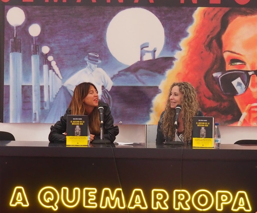 Me largo al Espacio a Quemarropa buscando sangre y literatura y me encuentro con el editor Fernando Paz que ha venido acompañado a su autora ovetense Malenka Ramos para presenta su nueva obra "El asesino de la máscara Noh", que ha publicado el sello Contraluz. Está con la autora Carlota Suárez que le pregunta sobre su nueva novela policiaca de terror que va sobre un caso insólito que tiene desorientada a la policía de Barcelona: en el túnel de una estación de metro abandonada, aparece un cadáver en unas condiciones difíciles de explicar y más difíciles de creer. Al cadáver le han arrancado parte del rostro y en su lugar han colocado una máscara del teatro noh tradicional de Japón.