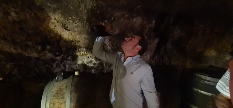 - ¡Cómo nos gusta pecar, Vani! ¡Bien le dabas al porrón en las entrañas de la tierra donde se guardan los secretos de los vinos más pícaros y revoltosos de la zona! Vinos con encanto que elaboran para llegar a los paladares más traviesos y exigentes.