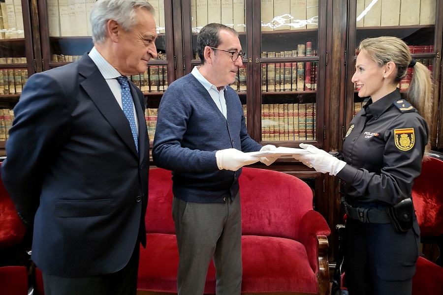 Patrimonio Nacional comunicó los resultados de la investigación a la Junta de Calificación, Valoración y Exportación de Bienes del Patrimonio Histórico del Ministerio de Cultura, quien a su vez solicitó la intervención de la Policía Nacional. Tras realizar las comprobaciones pertinentes, los agentes confirmaron que “efectivamente, los documentos eran propiedad del Archivo General de Palacio y, por tanto, procedimos a su restitución”, según explica la investigadora de la Brigada de Patrimonio Histórico, Ruth García.