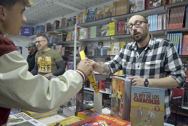 Alfredo Matarranz, de Tomos y Grapas, comenta que “esta feria quiere unir a los lectores con los dibujantes y escritores de cómic. El jueves fue un buen día de ventas y me gustaría creer que durante estos cuatro días la feria se va a poner a rebosar de público”.