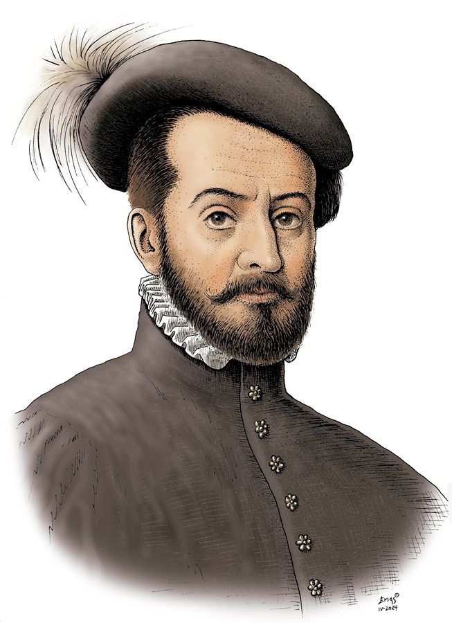 V.-FENOTIPO (CONJUNTO DE CARACTERES) DEL CONQUISTADOR DE MEDELLÍN- Está claro que Hernán Cortés tenía un carisma importante, y un atractivo reseñable para todos aquellos que se acercaban a él, los cuales hasta podían llegar a sacrificar su vida por su líder. Este hombre que no poseía bienes materiales destacables de ningún tipo, ya que era hijo de menor hidalguía; también generaba odios incoercibles, que creados por sus múltiples y envidiosos enemigos estaban acompañados por la habitual maledicencia y las oportunas calumnias, los cuales solían intentar perjudicarle llegando hasta el mismo trono imperial. Su estatura era de 1,64 metros. Verbigracia en el denominado juicio de residencia del año 1526 contra él, en el que se le acusó, a pesar de su obvia fidelidad, y contra todo tipo de pruebas fehacientes, de intentar un levantamiento contra el Emperador CARLOS V [Gante, 24 de febrero de 1500-Rey de León, de Castilla, de Navarra y de Aragón, como CARLOS I desde 14 de marzo de 1516, HASTA 16 de enero de 1556. EMPERADOR DEL SACRO IMPERIO ROMANO Y GERMÁNICO, DESDE el 23 de octubre de 1520, HASTA el 24 de febrero de 1558. Fallecería en Cuacos de Yuste, 21 de septiembre de 1558], en el que se le acusó de intentar ‘alzarse contra la tierra’, como Rey de La Nueva España. El veedor (inspector, visitador, observador. Vigilaban que determinadas acciones se desarrollasen respecto a las normas establecidas) sería Luis Ponce de León (Córdoba, ¿? -Gobernador de la Nueva España desde el 4 al 16 de julio de 1526. Ciudad de México, 20 de julio de 1526), quien falleció, en julio de 1526, antes de la celebración del juicio. Hernán Cortés fue muy mal aconsejado por el prior de los dominicos de México, fray Tomás Ortiz, O.P. (Calzadilla de Coria/Cáceres, siglo XV-Santa Marta/Colombia, 1532), quien sería protector de los indígenas como obispo en la gobernación de Santa Marta (1529-1531): “Y se guarde con ellos las leyes y ordenanzas para su buen tratamiento”. Hernán Cortés de Monroy y Pizarro-Altamirano nació en la ciudad badajocense de Medellín, en el año de 1485, y moriría en Castilleja de la Cuesta, en el Aljarafe sevillano el 2 de diciembre de 1547. Llegaría a ser el I marqués del Valle de Oaxaca, y el primer Gobernador de La Nueva España. Medía 1.64 metros de altura. Su padre era Martín Cortés de Monroy (Medellín, 10 de noviembre de 1455-Medellín, 10 de febrero de 1527), y su madre Doña Catalina Pizarro Altamirano (Medellín, ca. 1465-Medellín, ca. 1535). Fue un niño enfermizo, según refiere Francisco López de Gómara (Gómara/Soria, 1511-Ibidem, 1559), por lo que su nodriza lo encomendó, al estar en trance de muerte, a la protección de San Pedro. Tras misas múltiples y oraciones se curó, por lo que Hernán Cortés siempre dedicaba una misa anual al Primer Apóstol de Cristo. Como estudiante en Salamanca/Reino de León, a los 14 años, ya se le definía como ‘altivo y bullicioso’. En 1504 zarpó para Las Indias en la nao del onubense Alonso de Quintero, aunque en el Archivo de Protocolos de Sevilla se indica que su padre abonó el importe del pasaje el 29 de agosto de 1506, ahora ya en la nao ‘San Juan Bautista’ de Luis Fernández Alfaro, quien entre 1531 y 1534 llegó a ejercer como contador interino de la Casa de Contratación de Indias en Sevilla (creada en 1503. Fiscalizaba todo el comercio con las Indias/América, Canarias y Berbería/regiones costeras de Marruecos, Argelia, Túnez y Libia. Entre 1717 y 1790 se estableció en Cádiz).
