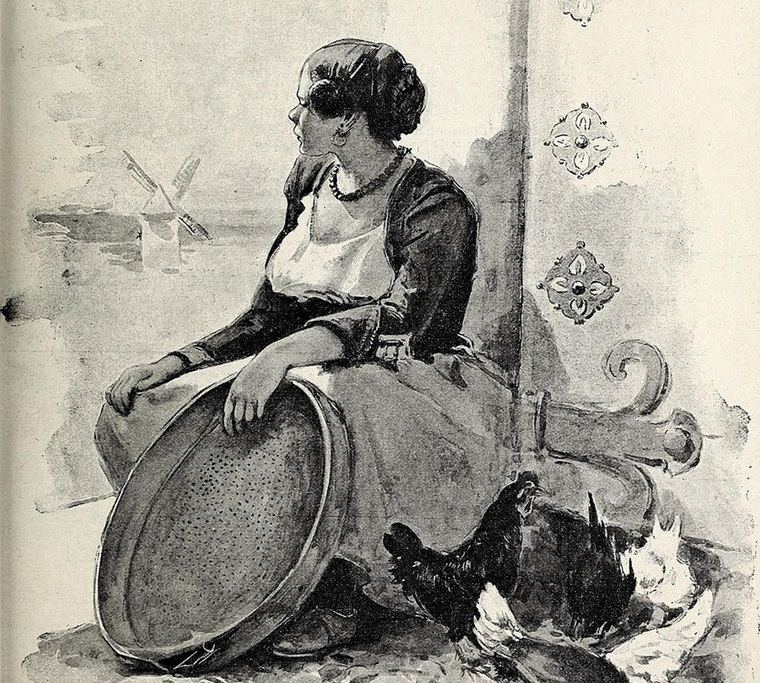 —Bien la conozco —dijo Sancho—, y sé decir que tira tan bien una barra [1] como el más forzudo zagal de todo el pueblo. ¡Vive el Dador [2], que es moza de chapa [3], hecha y derecha [4] y de pelo en pecho [5], y que puede sacar la barba del lodo [6] a cualquier caballero andante o por andar que la tuviere por señora! ¡Oh hideputa [7] qué rejo [8] que tiene, y qué voz! Sé decir que se puso un día encima del campanario del aldea a llamar unos zagales suyos que andaban en un barbecho [9] de su padre, y, aunque estaban de allí más de media legua, así la oyeron como si estuvieran al pie de la torre. Y lo mejor que tiene es que no es nada melindrosa, porque tiene mucho de cortesana: [10] con todos se burla y de todo hace mueca y donaire. […]