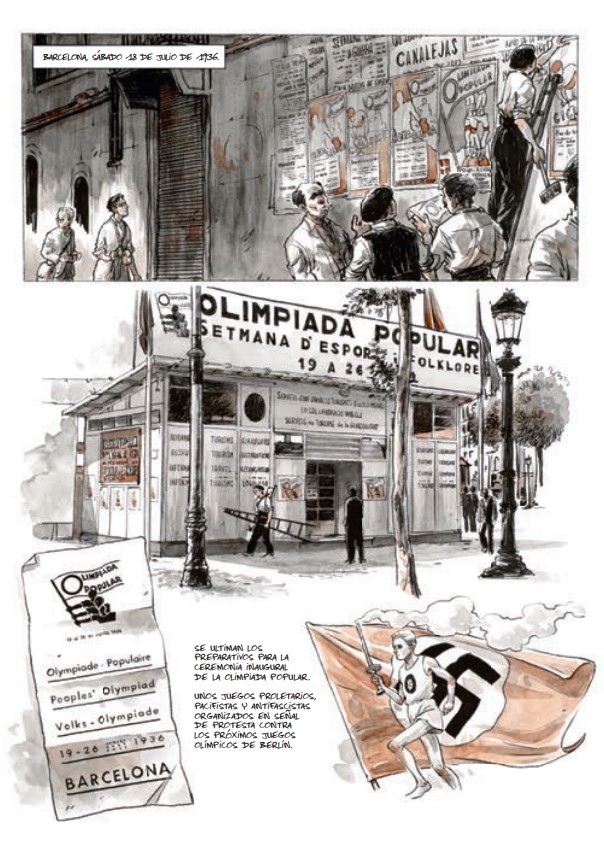 "Fotógrafos de guerra" nos sumerge en los primeros meses del conflicto español, utilizando un estilo que combina el periodismo narrativo con el cómic documental. A través de las experiencias de Namuth y Reisner, quienes fueron testigos privilegiados de un país dividido, se revela la realidad de esa época. Su llegada tenía como objetivo cubrir la Olimpiada Popular, un evento antifascista que se organizó en respuesta a los Juegos de Berlín, pero rápidamente se encontraron siguiendo a milicianos, civiles y combatientes a lo largo del frente.
