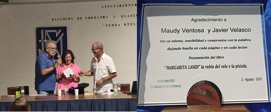 Este verano, han tenido el inmenso honor de poder participar en la Semana Cultural que ha organizado Luis María Nieto, el alcalde que no duerme, diferentes personas. Primero, dando el pregón de las fiestas el día de Santiago, Maudy Ventosa, y más tarde presentando el libro “Margarita Landi. La rubia del velo y la pistola” que ha escrito junto al periodista y escritor Javier Velasco Oliaga. ¿Hay algo más bonito que dar el pregón en su pueblo? ¡Desde luego que no! La autora se sintió arropada por dos pueblos a la vez, por los amigos con los que compartió los mejores años de su vida; querida y orgullosa de sus raíces y, por supuesto, se sintió muy emocionada.